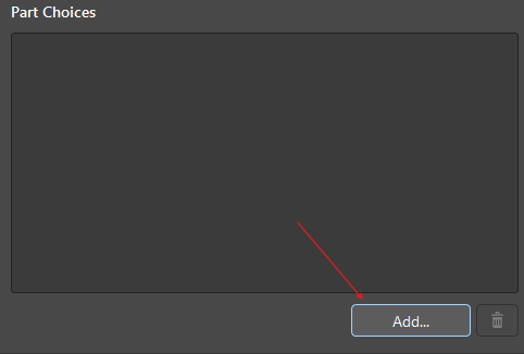 Now, let’s add some properties. Normally, we’d just add a manufacturer link, and most of the relevant properties would automatically populate. However, since this is a fake part, we’ll link it to the LM358DT for demonstration purposes. Back on the component tab, select Add... under Part Choices.
